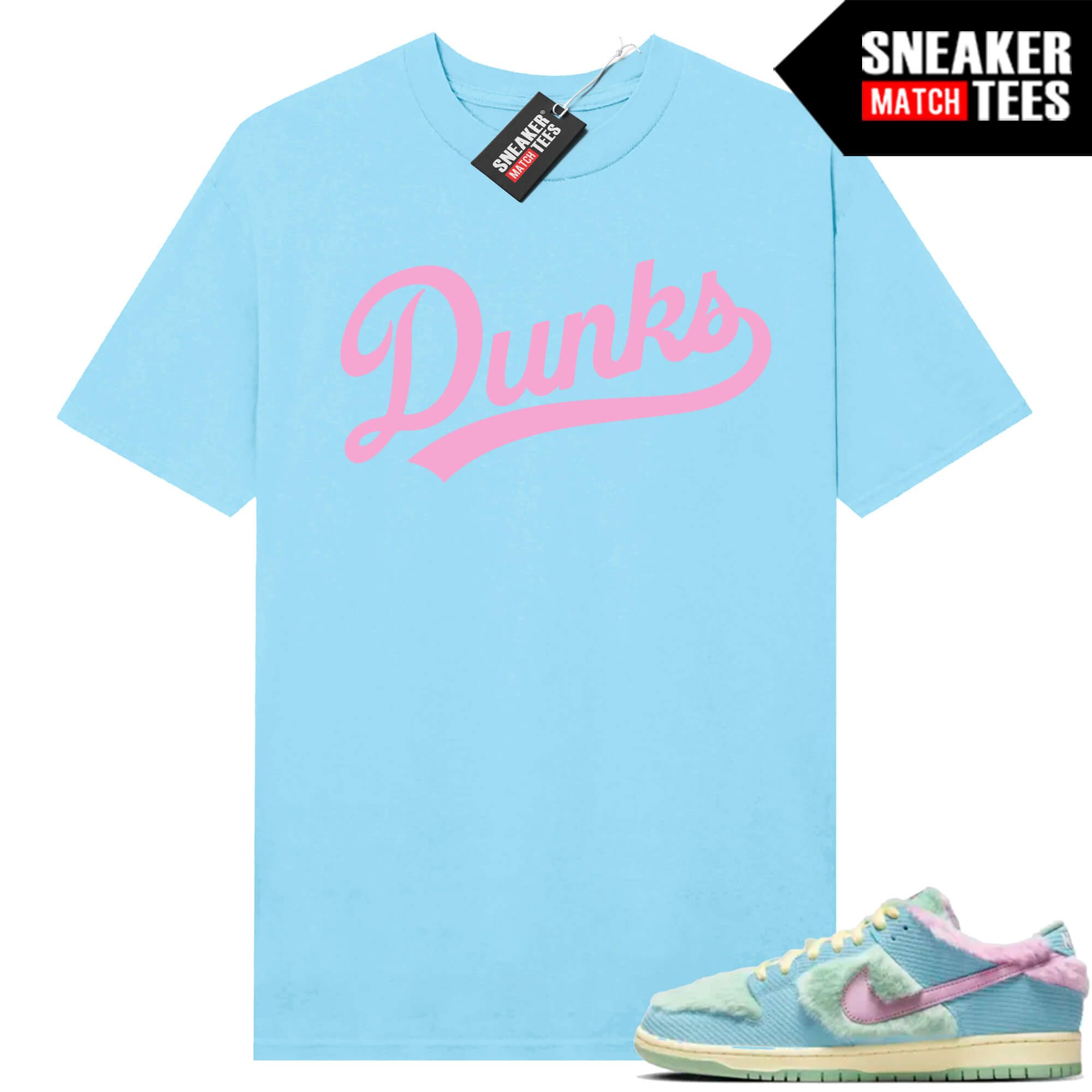 The “Dunks Script” Tee shirt was designed to match with your Dunk sneakers. This design is exclusive to Sneaker Match Tees Online shop. Complete your Sneaker outfit with this exclusive design.