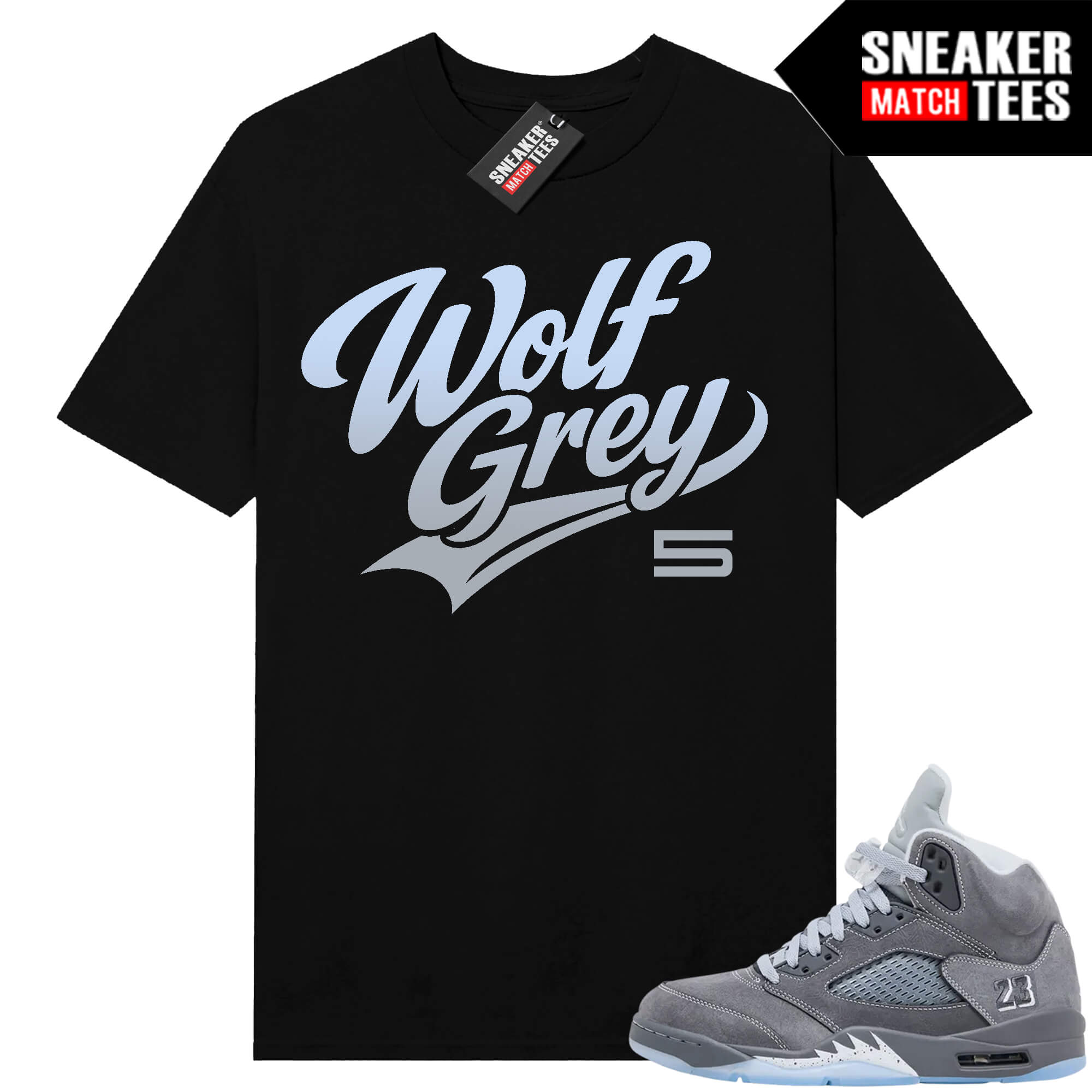 Jordan 5 Wolf Grey x Sneaker Match ® Collection. Wolf Grey 5s Sneaker Match Tees Black Wolf Grey Script. Sneaker clothing and graphic sneaker tees to match the latest sneakers.