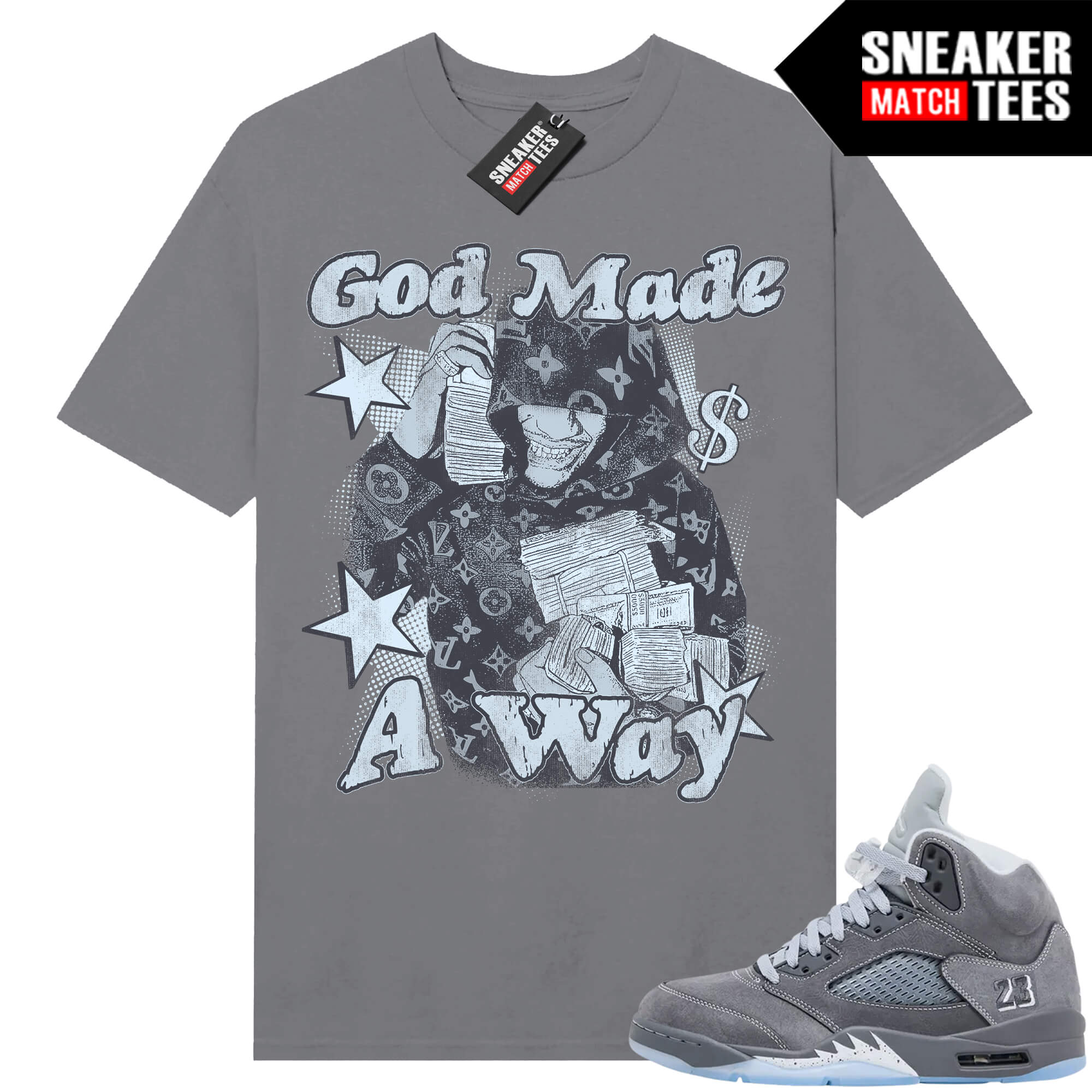 The “God Made A Way” Tee shirt was designed to match with your Jordan 5 sneakers. This design is exclusive to Sneaker Match Tees Online shop. Complete your Sneaker outfit with this exclusive design.