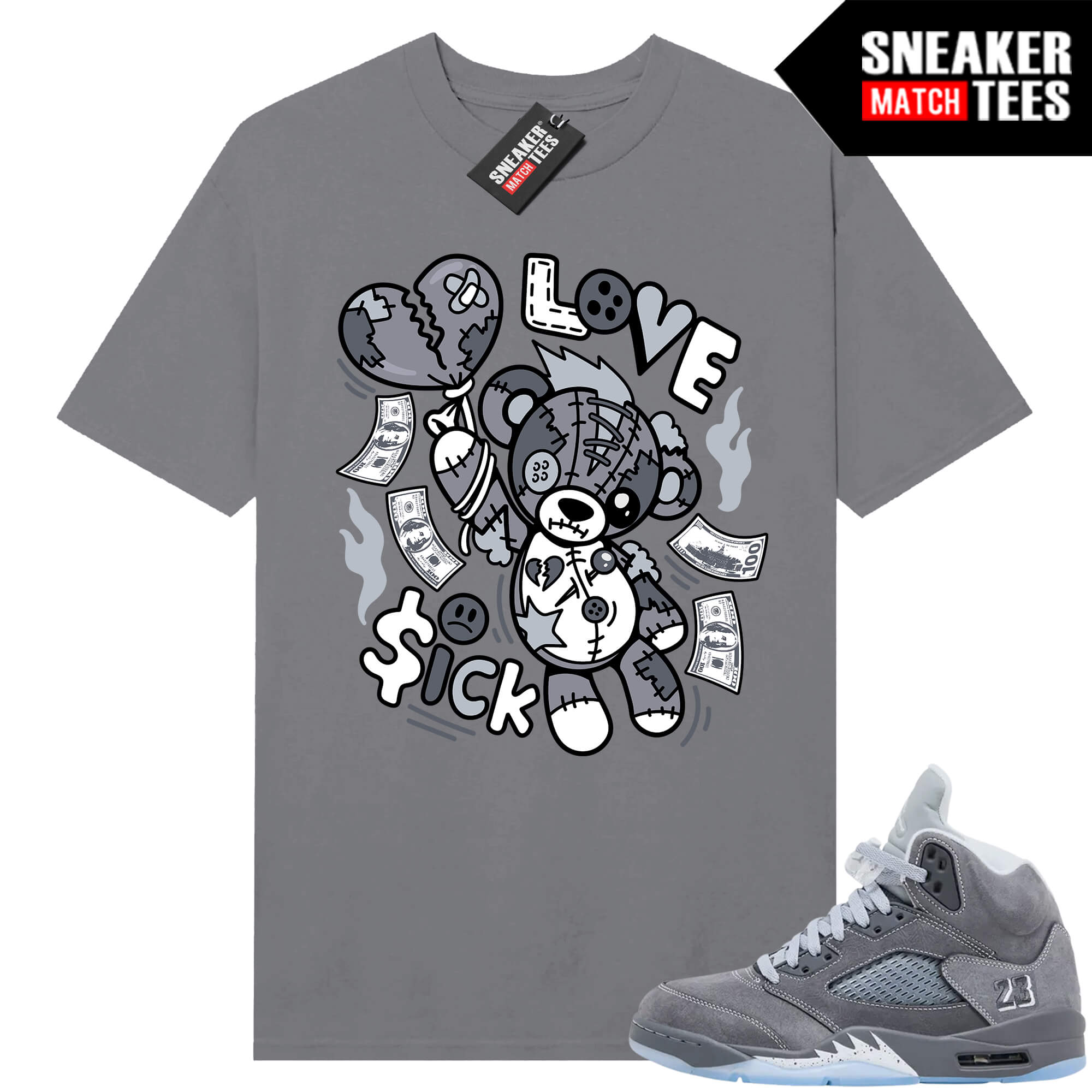 The “Love Sick Bear” Tee shirt was designed to match with your Jordan 5 sneakers. This design is exclusive to Sneaker Match Tees Online shop. Complete your Sneaker outfit with this exclusive design.
