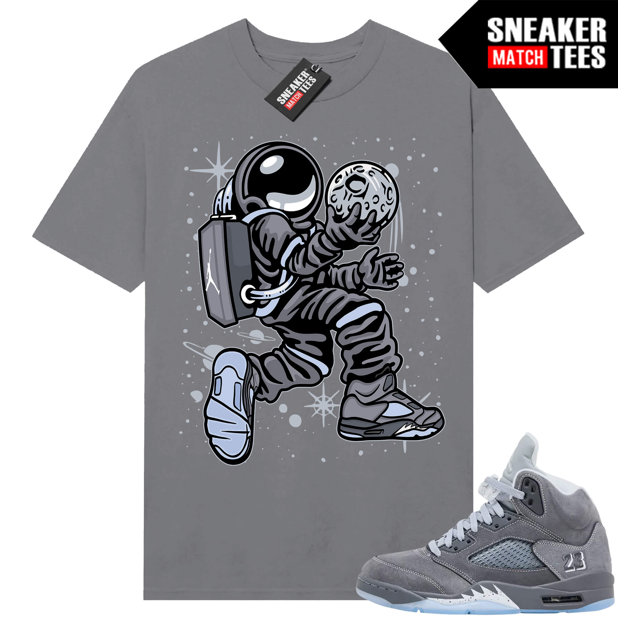 The “Moon Man 5s” Tee shirt was designed to match with your Jordan 5 sneakers. This design is exclusive to Sneaker Match Tees Online shop. Complete your Sneaker outfit with this exclusive design.