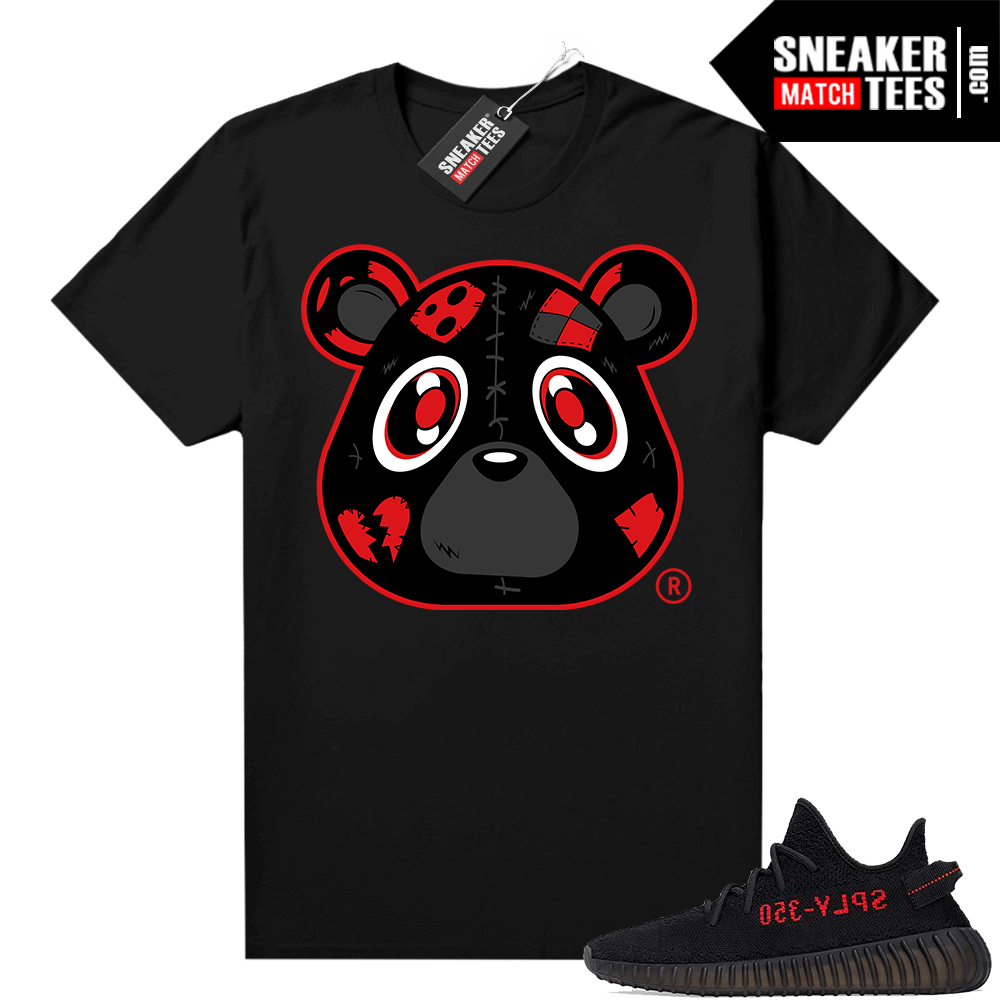 Yeezy Bred Shirt Black Heartless Bear. Sneaker Match shirts designed to match Yeezy Bred colorway. Sneaker clothing and apparel to match Yeezy shoes.